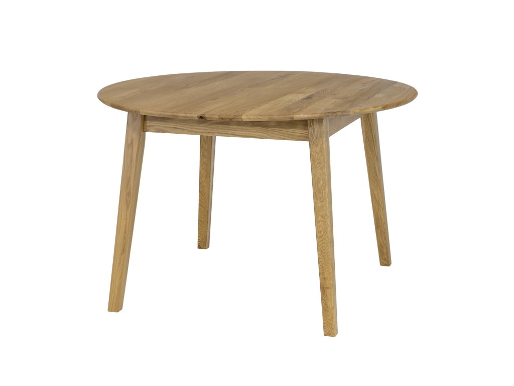 ST392 rozkladací stôl, vyrobený z masívneho dubového dreva. Dizajnový okrúhly vršok so šírkou 2 cm so zaoblenými hranami a skosenými nohami, v spodnej časti mierne zúženými, dodávajú celej konštrukcii ľahkosť. Doska stola je vyrobená z masívnych dubových lamiel, ktoré zaisťujú odolnosť a jedinečný vzhľad. Štruktúra lamiel, teda pozdĺžnych pásov spojených do jednoliateho celku, zdôrazňuje prirodzenú krásu duba a dodáva stolu jedinečný charakter.